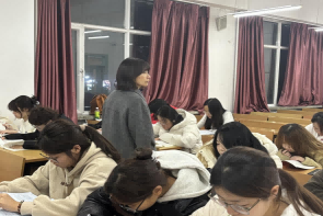 自2025年9月15日起,正式开启2025级新生晚自习。10月27日,学院党委书记綦明霞老师,副书记屈广宁老师,辅导员王馨莹、梁曼、王冠琪老师深入晚自习现场,查看学习情况,与同学们亲切交流。