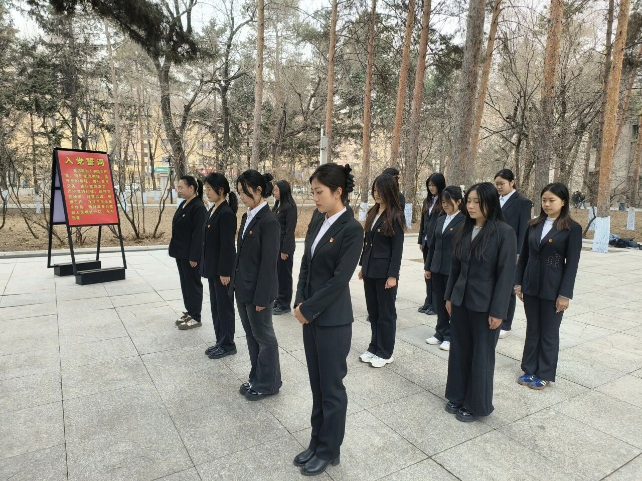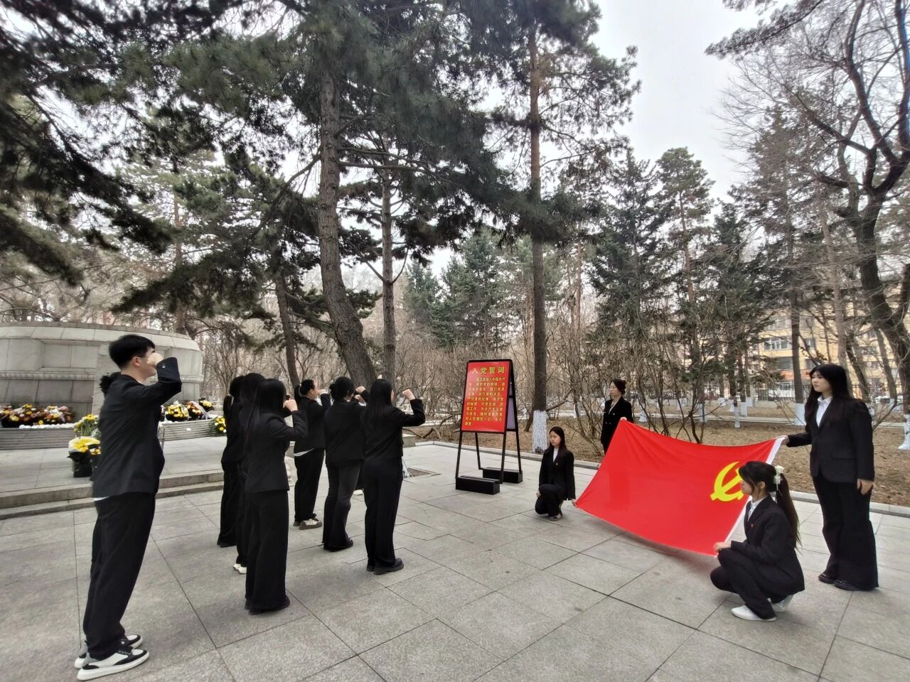 全体党员郑重宣誓承诺将继承先烈遗志,弘扬革命精神。以青春之我、奋斗之我,为强国建设、民族复兴贡献力量。
